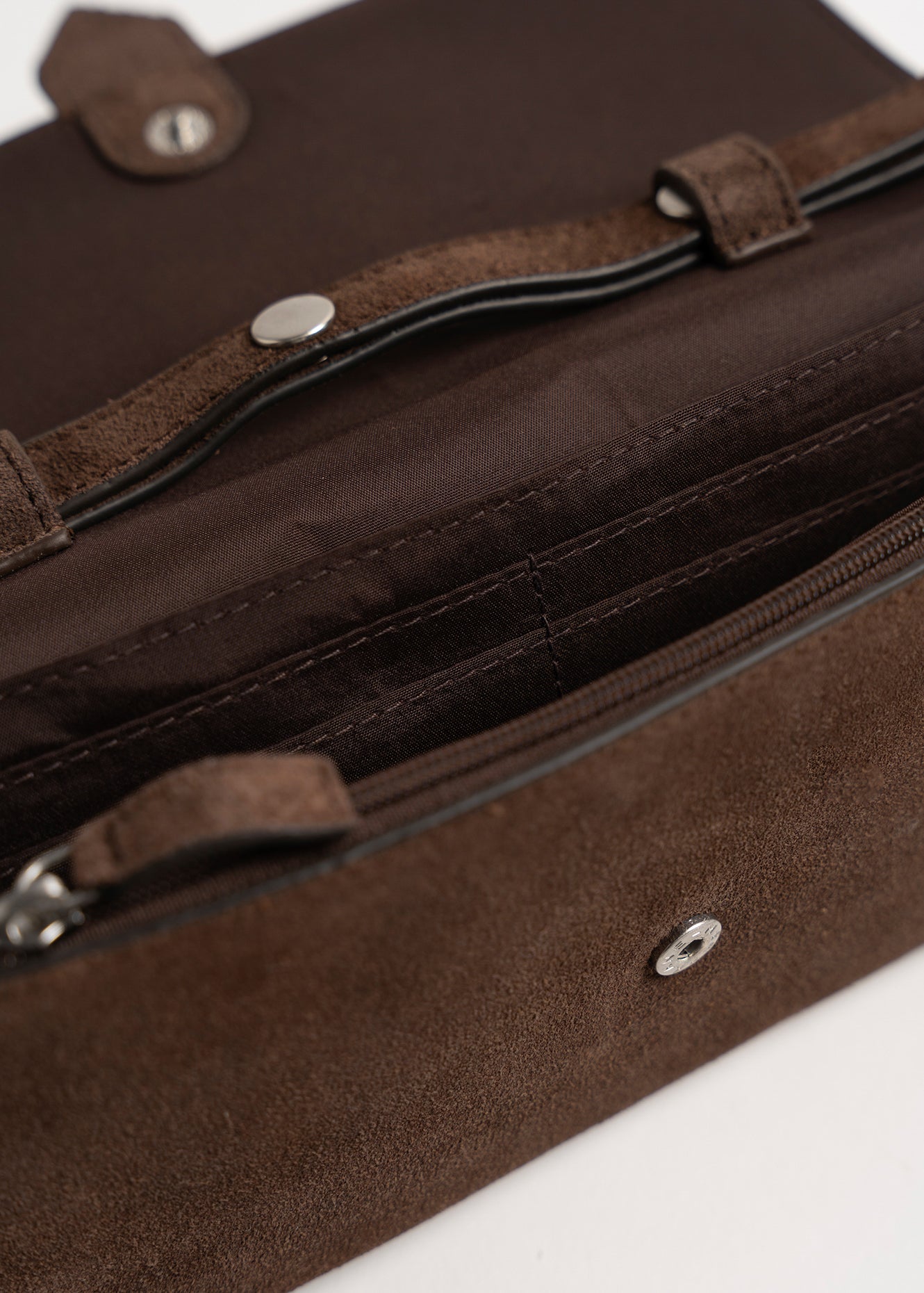 La tracolla Buffy in 100% vero camoscio è compatta e raffinata. Con patta e fibbia decorativa chiusura a calamita e tracolla regolabile e removibile. Staccando la tracolla si trasforma in un pratico e capiente portafogli con scomparto portacarte. Dimensioni: 18 5 × 11 × 1 5 cm.