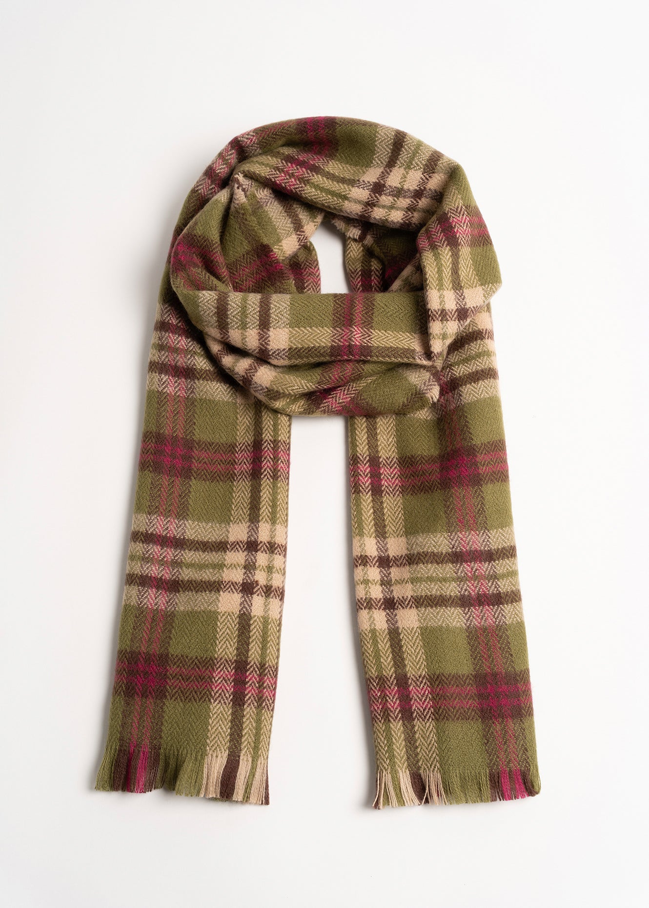 La sciarpa Shelby tessuta in fantasia scozzese con orlo sfrangiato è leggera ma calda perfetta per dare un tocco di colore ai tuoi outfit invernali. Versatile e di carattere completa cappotti classici e giacche casual. Dimensioni: 51 × 192 cm + 2×2 cm frange.