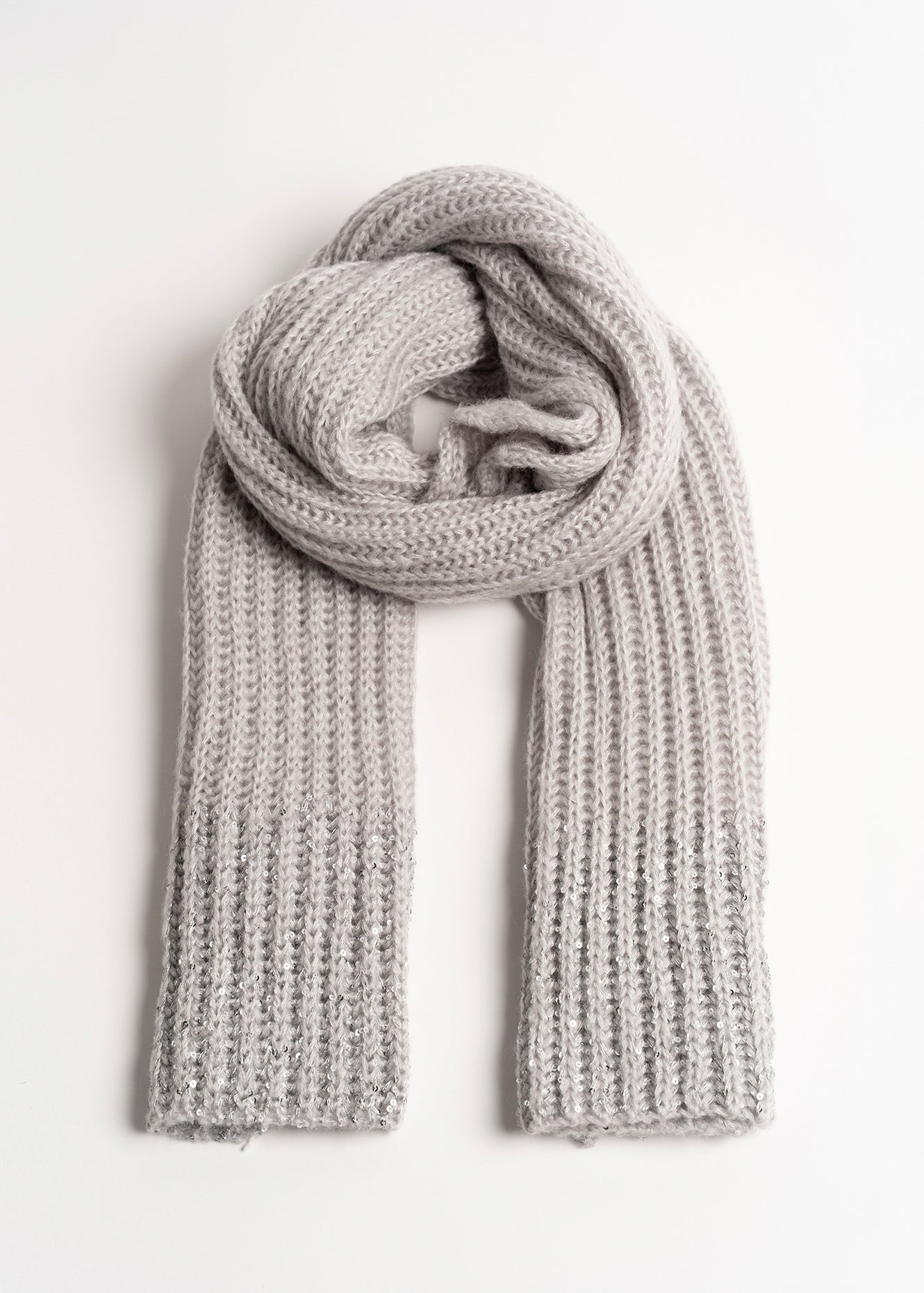 La sciarpa Sharon in maglia è resa speciale dal decoro di paillettes al fondo che aggiunge un tocco luminoso e femminile ai tuoi look invernali. Morbida e avvolgente si abbina facilmente a cappotti o piumini. Disponibile in due varianti colore. Dimensioni: 40 × 180 cm.